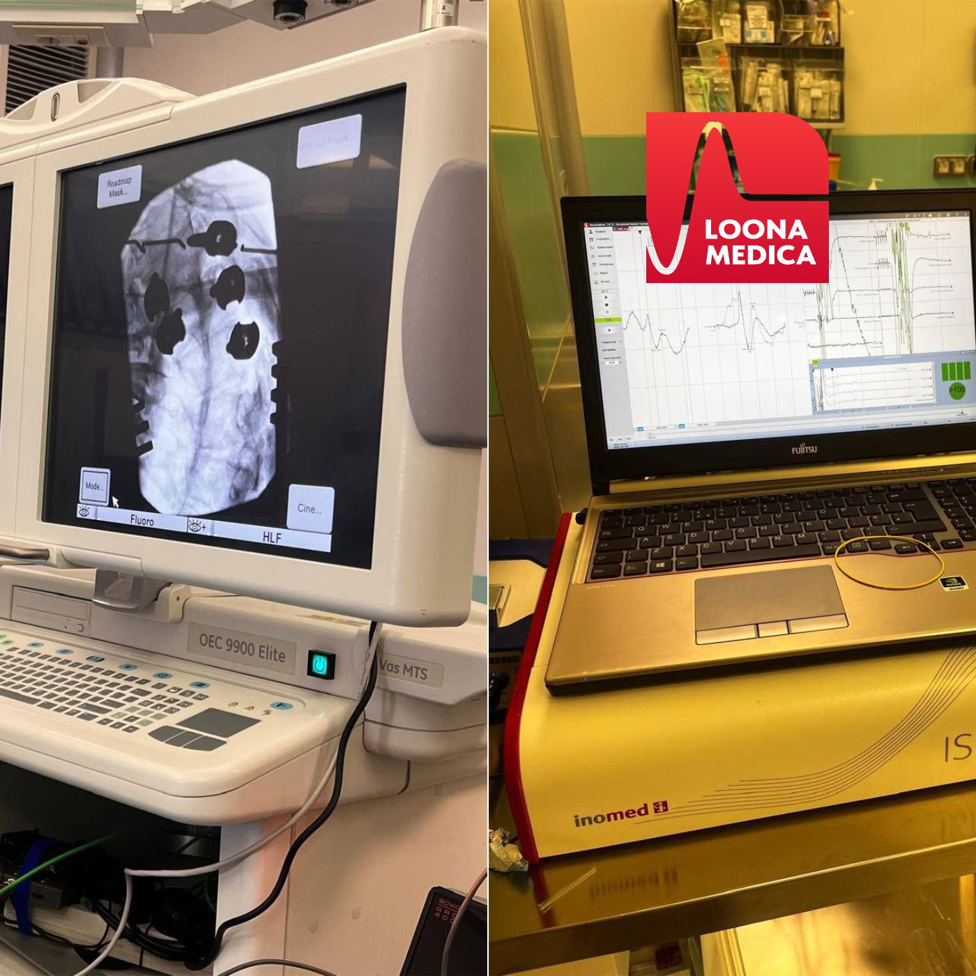 Во время коррекции деформации при транскраниальной электростимуляции отмечалось снижение амплитуд и воспроизводимости МВП на фоне колебаний артериального давления (эпизоды снижения до 68/45 мм рт. ст.). При увеличении силы стимула с базовых 70 мА до 90–95 мА регистрировалось частичное нарастание амплитуд, однако значения не достигали исходных. ССВП оставались стабильными, полного исчезновения моторных ответов не наблюдалось.
