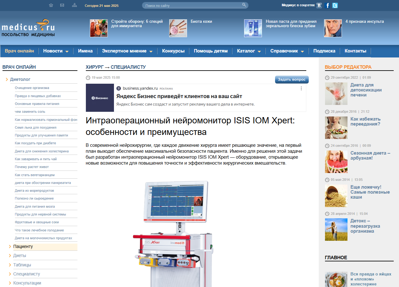 Интраоперационный нейромонитор ISIS IOM Xpert: особенности и преимущества